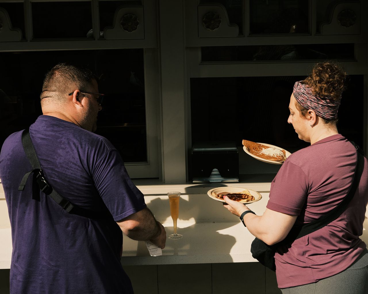 華特迪士尼世界艾波卡特主題公園內,遊客正在小吃攤領取可麗餅。餐飲:出發前往樂園前在房間享用早餐,並打包好全天所需的午餐或零食。在快餐店選擇免費冰水替代汽水,主餐可不點配菜。小技巧:通過Instacart網購迪士尼主題零食如果汁軟糖,直接配送到酒店。