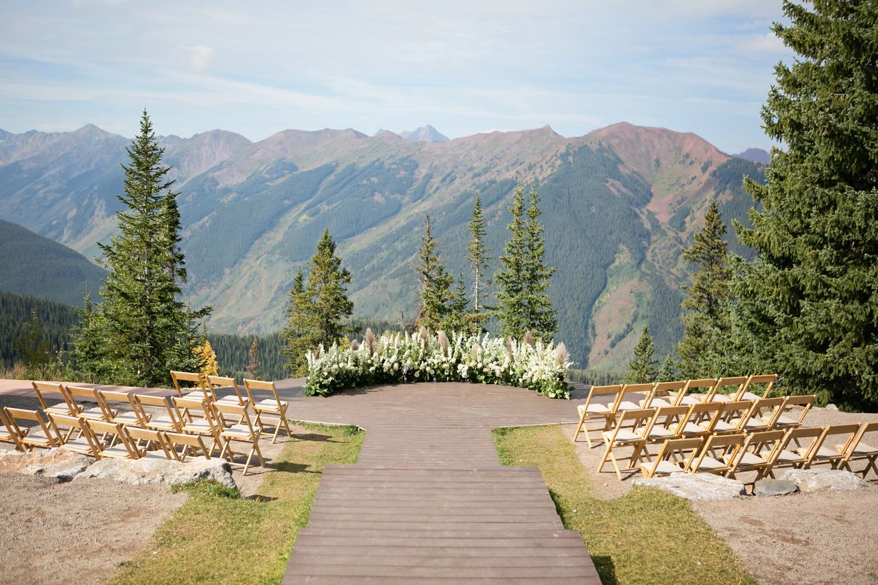 海拔11,212英尺的小內爾酒店婚禮露台坐落在阿斯本山頂,為宣誓儀式提供了壯觀的制高點。攝影:羅賓·普羅克特### 1. 科羅拉多州阿斯本