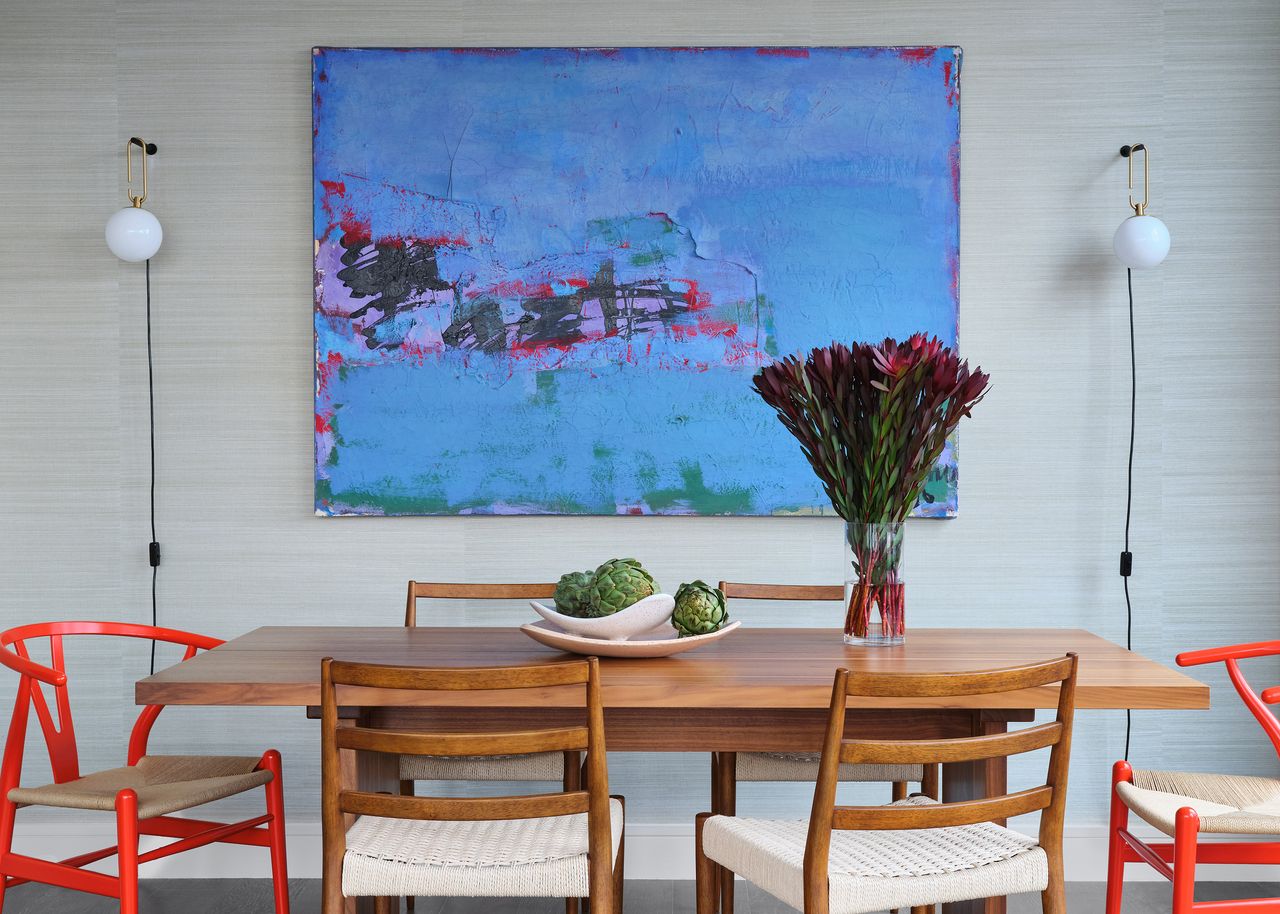 在這間布魯克林餐廳裏,設計師Rozit Arditi調和了妻子對中性色的喜愛與丈夫對色彩的渴望。攝影:Claire Esparros在這種情況下,圖片勝過千言萬語的疲憊談判。“大多數人無法用語言描述自己的風格,”紐約市設計師Rozit Arditi説。北卡羅來納州夏洛特市的設計師Gray Walker經常要求客户夫婦在Pinterest上“釘”出他們喜歡的圖片,這是一個簡單的要求,然後藉助這些視覺輔助尋求折中方案。“我發現傾聽雙方意見並讓每個人都得到一點他們想要的東西,是避免衝突的方法,”她説。