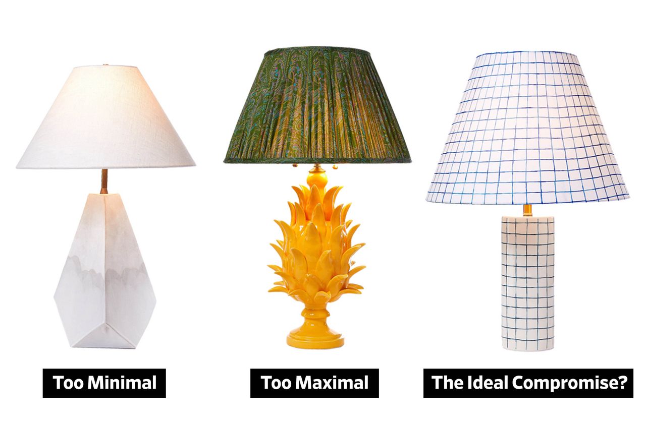 我們的折衷建議:馬克·D·賽克斯的燈,形狀足夠基本以提供幾何嚴謹性,但裝飾着從燈罩到燈座的明亮藍色網格圖案,顯得俏皮。