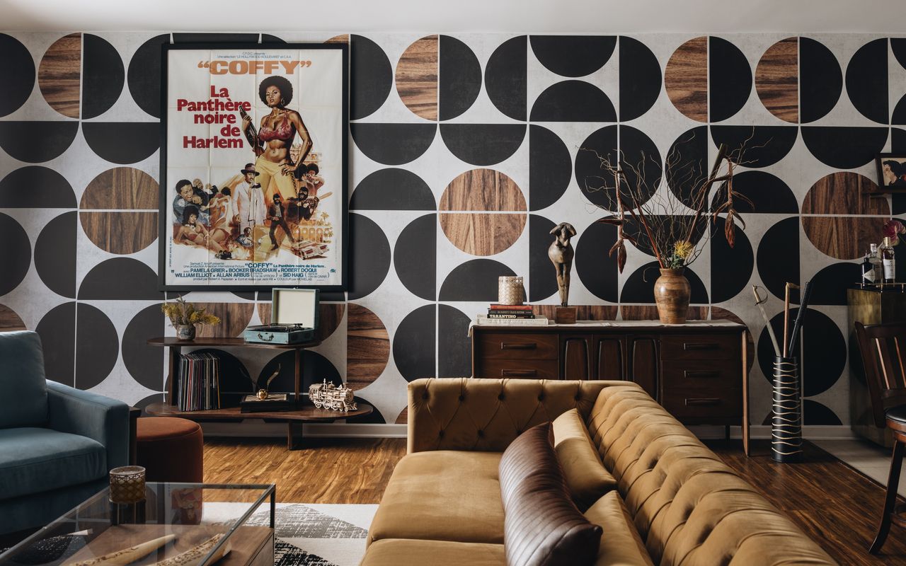 另一個保持理智的策略:選擇容易更換的裝飾。當洛杉磯設計師Rydhima Brar的客户想要一款1970年代風格的大膽圖案壁紙時,她的另一半並不覺得這很時髦。解決方案是什麼?使用可拆卸壁紙,如果他之後仍然反對就可以更換。最終,他接受了這個設計。