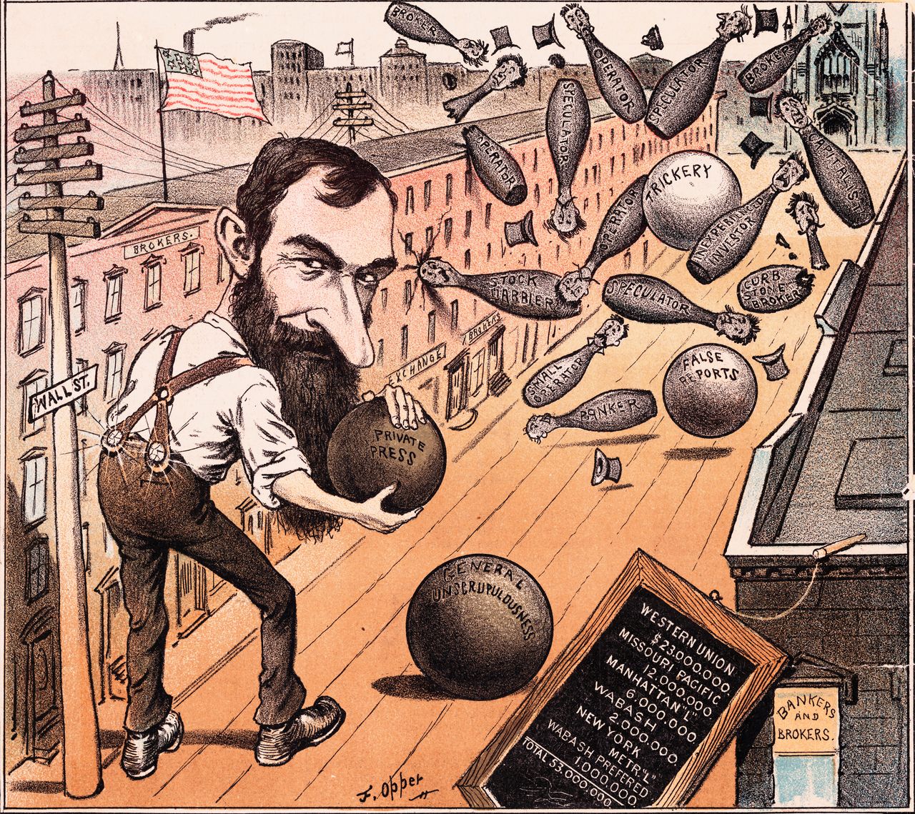 古爾德早已精通“空頭襲擊”——做空一家公司的股票,散佈大量關於其即將破產的謠言,然後在股價暴跌後以跳樓價收購多數股份。當這一策略不足以維持對伊利鐵路的控制時,古爾德和菲斯克在範德比爾特收買的紐約州立法機構無法觸及的澤西城一家酒店設立了辦公室,在屋頂架設了幾門野戰炮,並開始在其下印刷新的伊利股票。與此同時,古爾德悄悄穿梭於奧爾巴尼州議會大廈,鼓勵議員們從他隨身攜帶的鼓鼓囊囊的錢袋中自取現金。