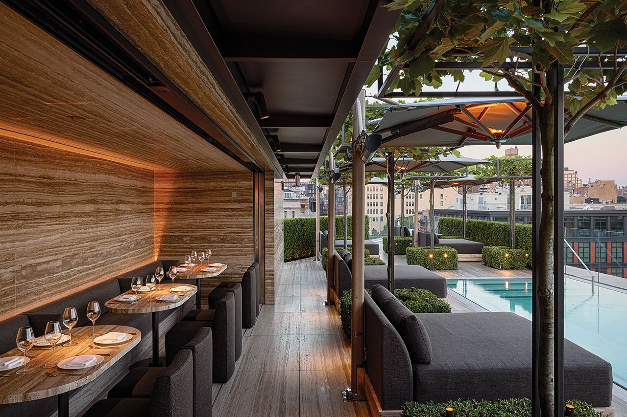 品牌首家住宿概念店RH賓館的屋頂設有泳池和僅供住客使用的用餐露台。坐在角落長椅上等待新牛排時,弗裏德曼通過一份編纂了三十餘年的清單講述賓館的起源。清單主題是他在其他酒店經歷並渴望修正的缺陷。