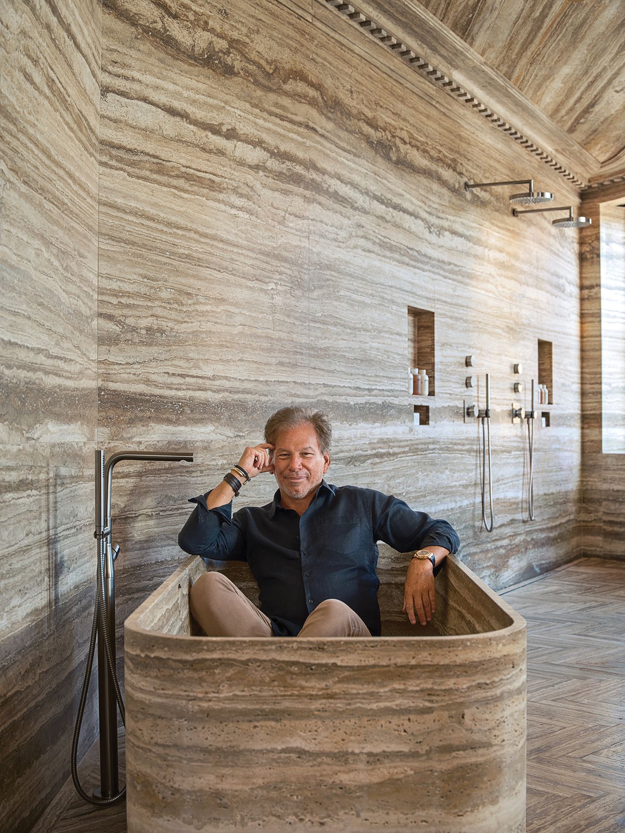 “我們認為隱私將成為重要的奢侈品市場,”加里·弗裏德曼在紐約RH賓館私人住所的浴室中拍照時説道。加里·弗裏德曼 想把牛排退回廚房。