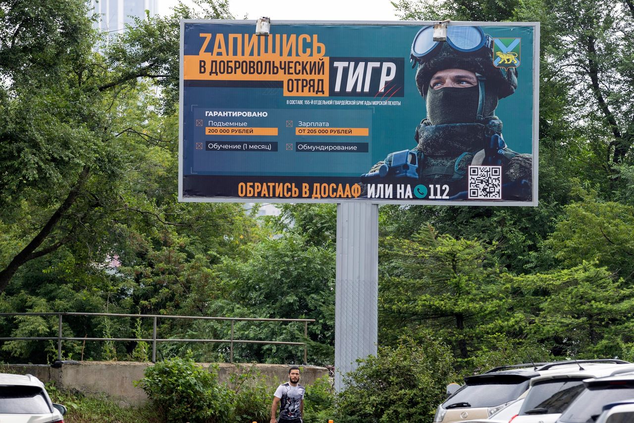 相反,俄羅斯當局在廣告牌、網站、公共交通和官方城市門户網站上張貼廣告,敦促俄羅斯人報名參軍。據一直在監測俄羅斯徵兵行動的軍事分析人士和活動人士稱,移動徵兵中心如雨後春筍般湧現,當局正在從僱傭軍組織、監獄、退伍軍人團體和志願旅等來源尋求人力。