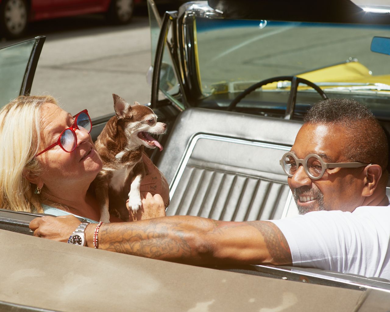 託斯蒂·迪瓦爾米努塔女士和佩尼亞先生與喬喬在凱迪拉克車裏。“我們給它取名‘凱迪女士’,我們很愛她,”他説。攝影:《華爾街日報》的薩姆·威廉姆斯佩尼亞先生: 對於這麼大的車來説,在街上停車可能很困難。由於街道兩側交替停車,我不得不頻繁移動車輛。在曼哈頓開這樣的車容易嗎?如果你是在這座城市出生和長大的,那就輕而易舉了。我妻子出生在羅馬,她在紐約開這輛凱迪拉克毫無問題。到現在,這已經成了一種情感寄託,我們很喜歡凱迪拉克女士給社區帶來的歡樂。有一次一個人問我是否可以和這輛車合影,我説:“不如我把車頂放下來,你可以坐進去?”正如我父親教導我的:友善待人。這不需要任何代價。