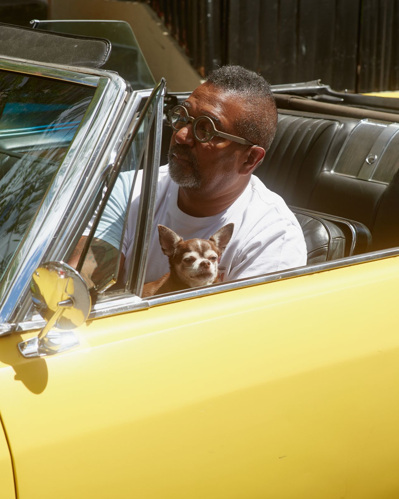 佩尼亞先生坐在1965年款凱迪拉克Eldorado裏,旁邊是他們家的狗Jojo。攝影:《華爾街日報》的薩姆·威廉姆斯