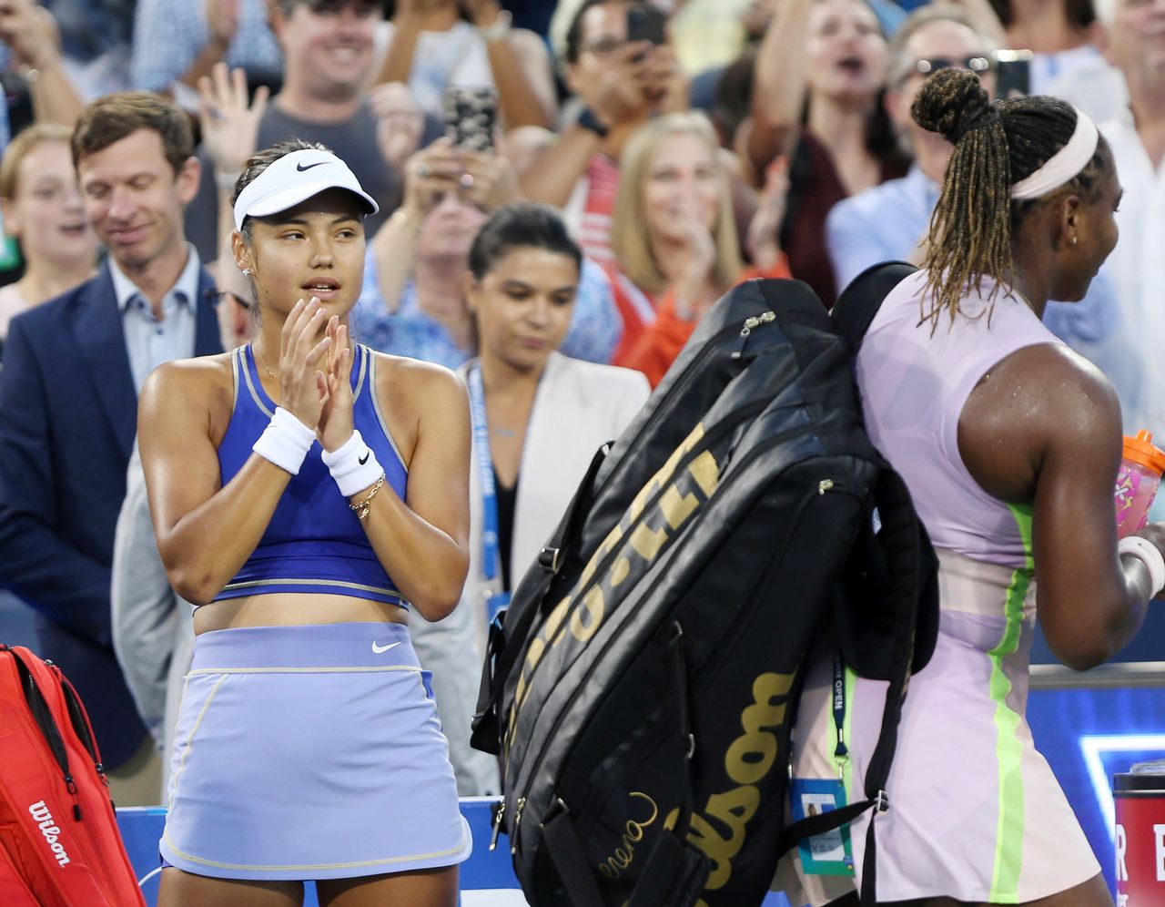 “我簡直不敢相信自己剛剛和小威廉姆斯交手過,“艾瑪·拉杜卡努説道。照片:馬克·里昂斯/祖瑪通訊社刊登於2022年8月29日印刷版,標題為《塞雷娜·威廉姆斯的數據》。