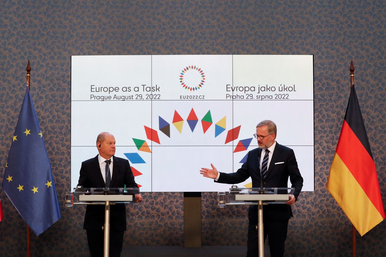 週一,德國總理奧拉夫·朔爾茨(左)和捷克總理彼得·菲亞拉在捷克共和國布拉格。圖片來源:DAVID W CERNY/REUTERS德國和其他一些歐盟大國反對全面禁令,歐盟外交政策負責人何塞普·博雷利認為,切斷與俄羅斯平民的聯繫會適得其反,也不會贏得歐盟各國政府的共識。