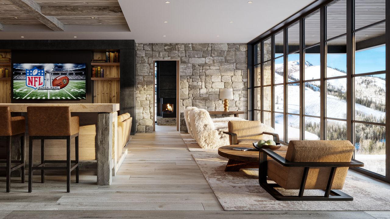 該物業將成為猶他州市場上最昂貴的房產之一。圖片來源:Blok Studio(效果圖)他透露,房屋將採用手工切割的蒙大拿苔原石建造,搭配回收木材裝飾天花板與牆面,營造温馨氛圍。
