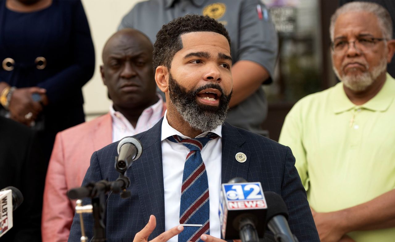 傑克遜市長喬克韋·安塔爾·盧蒙巴週二在新聞發佈會上講話。圖片來源:芭芭拉·岡特/《號角紀事報》/美聯社民主黨籍的傑克遜市長喬克韋·安塔爾·盧蒙巴週一在發佈會上表示,近期洪水已淹沒水廠。由於水處理能力不足,該設施近日減少了居民供水。