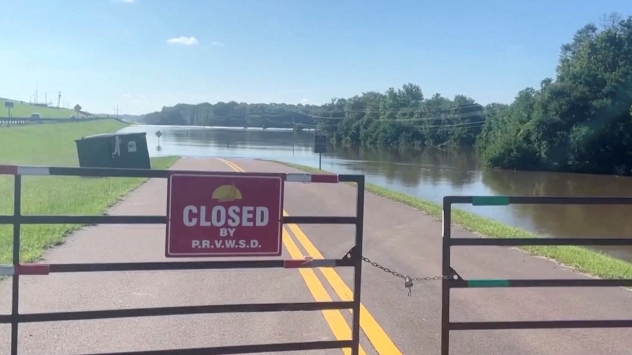 密西西比州里奇蘭市珍珠河附近被洪水淹沒的區域,視頻截圖。圖片來源:路透社電視/路透社傑克遜市官員表示,修復該市供水基礎設施需耗資逾2億美元。