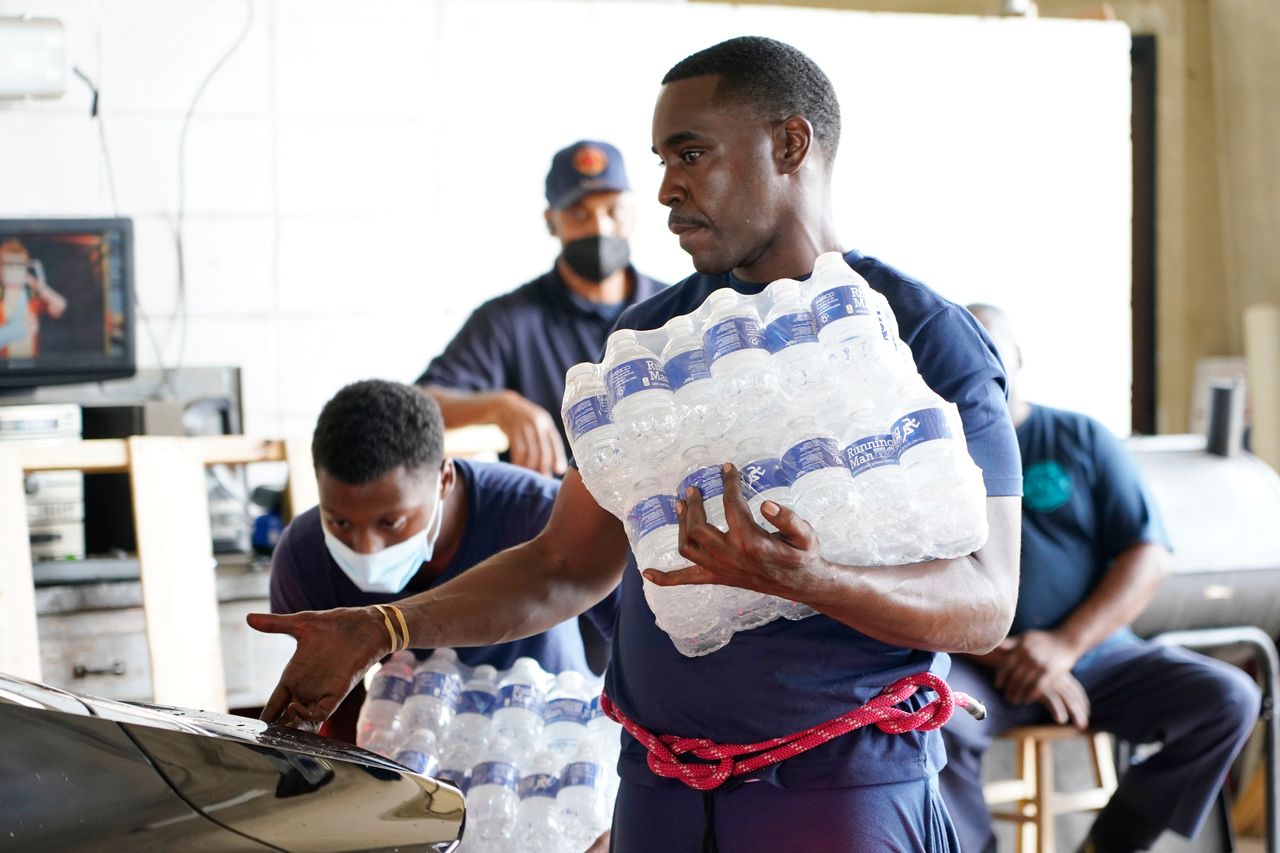 瓶裝水正在分發給密西西比州傑克遜的居民。圖片來源:Rogelio V. Solis/美聯社週一,五名州參議員致信裏夫斯州長,要求他召開一次特別立法會議以解決水危機。