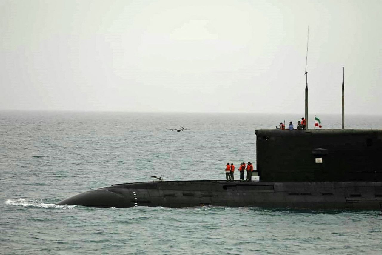 伊朗軍方7月發佈的資料圖片,顯示一架從伊朗海軍潛艇發射的軍用無人機。圖片來源:Iranian Army office/Agence France-Presse/Getty Images