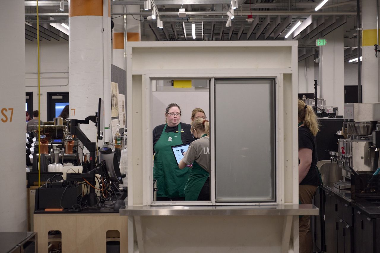 在這個名為"嘗試中心"的兩萬平方英尺空間裏,咖啡師們在模擬星巴克門店中來回穿梭於冰箱、攪拌機和糖漿台之間,只為製作一杯頂部覆有冷奶沫和焦糖醬的混合咖啡。他們提出能否優化廚房佈局,讓設備間距更緊湊,並改進糖漿泵、牛奶分配器和冰槽的功能。