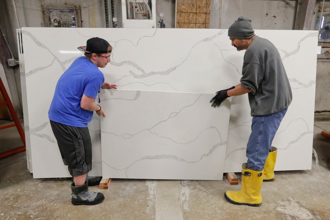 2019年5月3日,印第安納州蒂普頓市Marble Uniques公司的工人正在搬運進口石英板材。圖片來源:邁克爾·康羅伊/美聯社