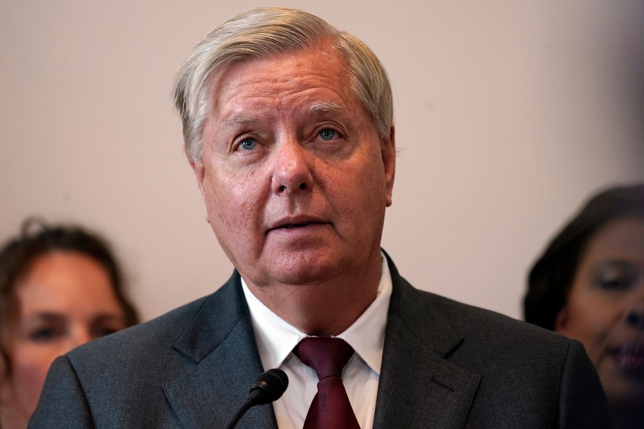 9月13日,參議員林賽·格雷厄姆在國會山就《保護有痛覺能力的未出生嬰兒免受晚期墮胎法案》發表講話。圖片來源:Mariam Zuhaib/美聯社
