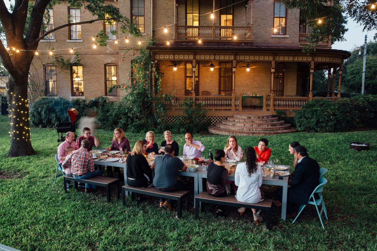 隨着人們逐漸走出社交隔離的繭房,現在正是慶祝的理想時機。但如果你家和我們家一樣小——即使有幾位客人站在浴缸裏也容納不下56位賓客——這就帶來了挑戰。而在我們居住的北加州,夜間氣温常年徘徊在涼爽的秋季水平。