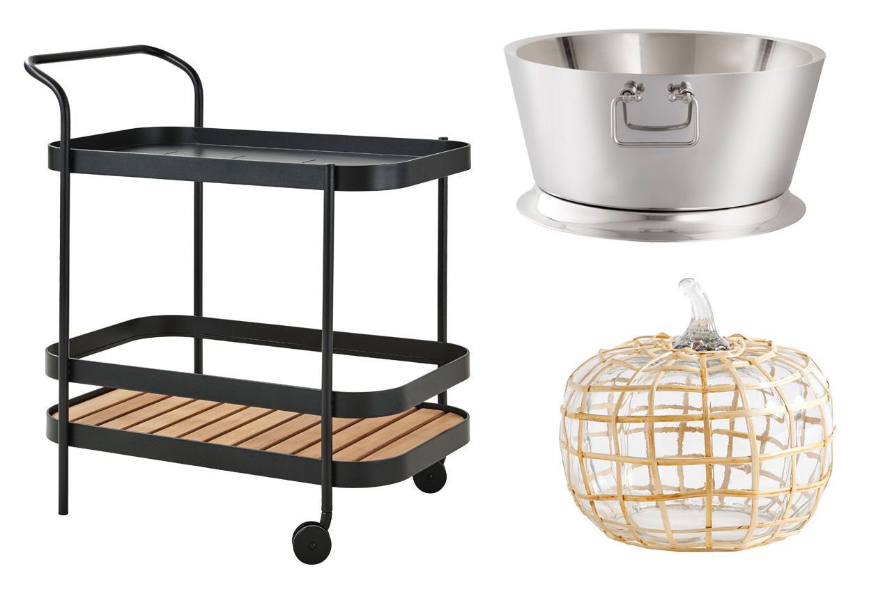 順時針從左至右:滾輪酒吧推車,1615美元,Cane-Line.us;雙層飲料冰桶,75美元,BedBathAndBeyond.com;棕櫚藤編再生玻璃擺件,69美元起,PotteryBarn.com華爾街日報未向文中提及的零售商收取產品推廣費用。所列零售商通常並非唯一銷售渠道。