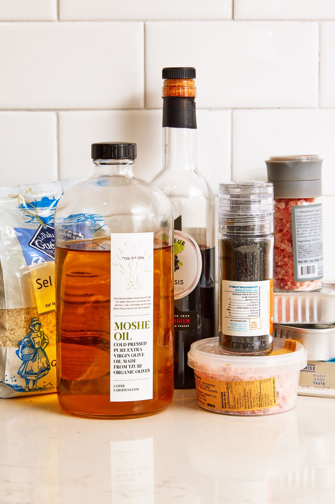 **我的食品櫃永遠備有:**各式各樣的鹽,我對鹽有點痴迷。還有罐頭沙丁魚——小時候媽媽總給我帶沙丁魚黃油吐司當午餐,她把沙丁魚泥和法式鹹黃油抹在麪包上。同學們覺得可怕還嘲笑我,但我至今熱愛沙丁魚。另外我總會儲備多種橄欖油和豆類。