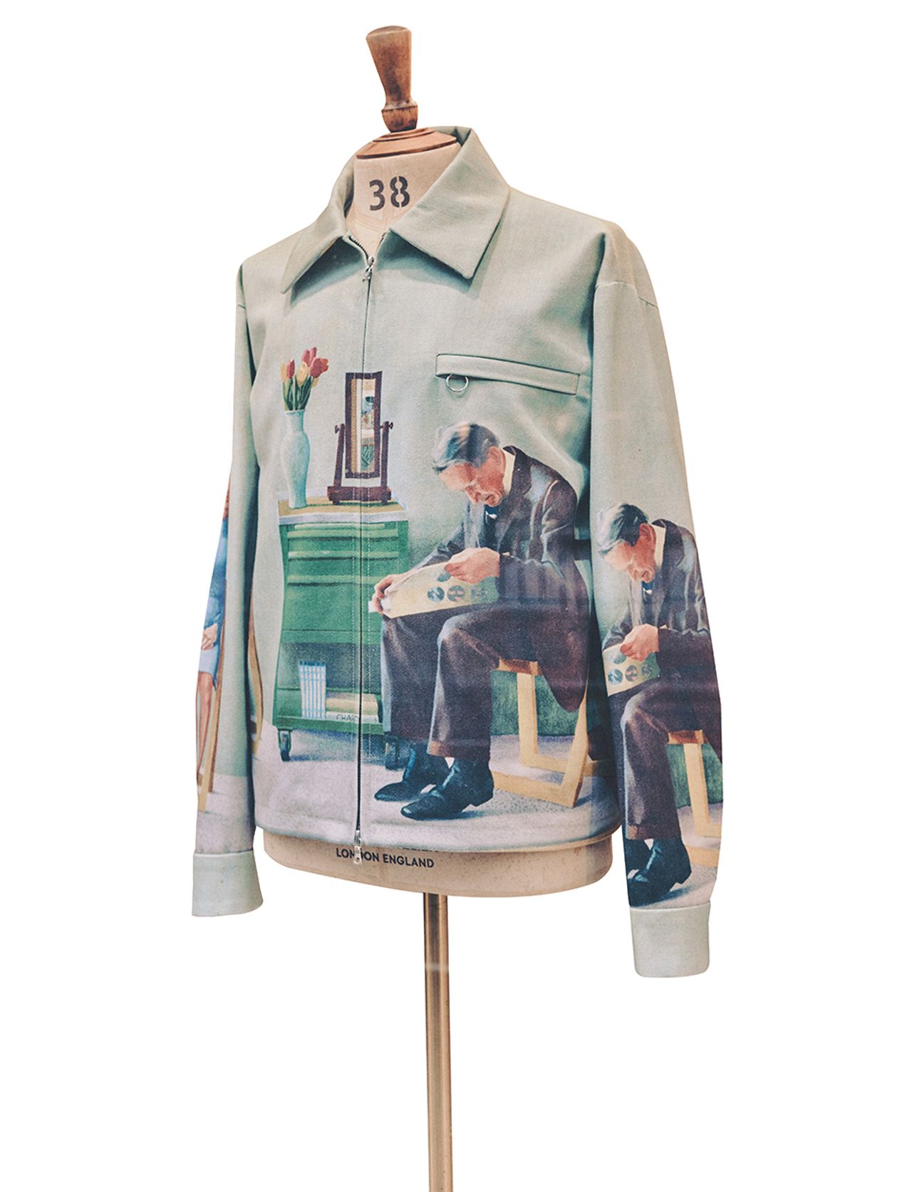 一件印有大衞·霍克尼1977年畫作《我的父母》的Clothsurgeon牛仔夾克。因此,Clothsurgeon會像法醫般精確記錄客户的身形數據。當馬塔魯先生用捲尺快速丈量我的軀幹,隨後停下來端詳我的肩膀時,我感覺自己像只參展的貴賓犬。他難以理解為何我一邊肩膀比另一邊更傾斜,問道:“你是滑板愛好者嗎?“真希望原因有那麼酷。對於我的夾克,他説可以通過墊高一側肩膀、柔化另一側來掩飾我骨骼的異常——這招很巧妙。他的作品通常需要約四周時間和至少一次試穿才能完成。所有工序也可線上完成——該品牌擁有大量美國客户——價格從約1600美元的夾克到4550美元的大衣不等(根據面料不同有時更貴)。