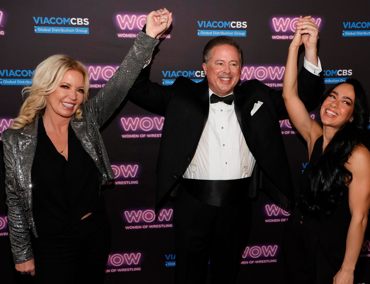 WOW的珍妮·巴斯(左)和大衞·麥克萊恩(中)因聘請AJ·門德斯擔任執行製片人和色彩評論員而贏得了摔角愛好者的好評。門德斯女士(右)曾是2010年代WWE的明星選手。圖片來源:Ethan Miller/Getty Images“當我還是粉絲時,電視上看到的比賽真的就是內衣褲比賽和舞蹈競賽。當我進入摔角界時,有人告訴我‘女子比賽只是爆米花時間’”,讓觀眾有空去買零食,她説。正是巴斯女士及其對全女子陣容的堅持打動了門德斯重返摔角界。