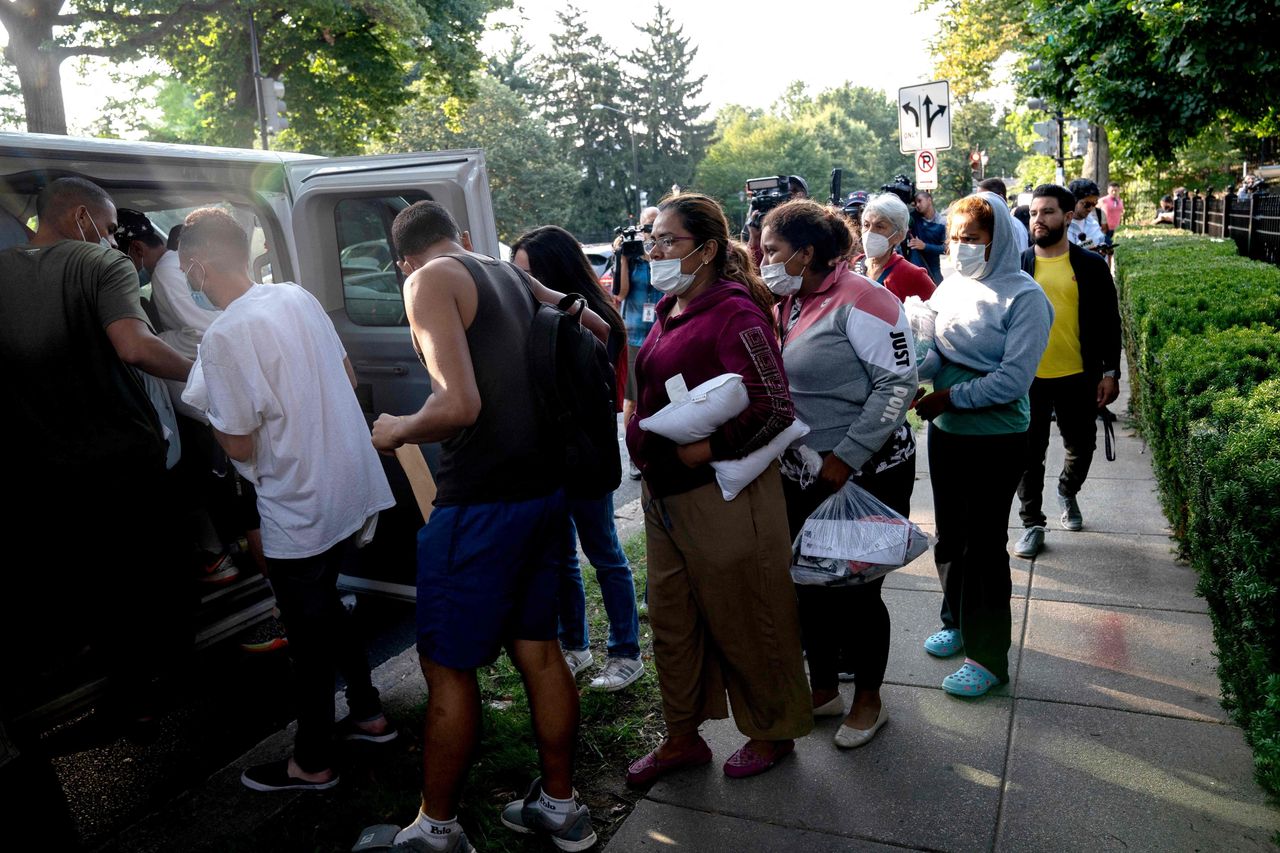 週三,委內瑞拉移民在馬薩諸塞州瑪莎葡萄園島的一所高中。圖片來源:RAY EWING/VINEYARD GAZETTE/REUTERS紐約市官員本週表示,自5月以來,隨着1.1萬名尋求庇護者抵達,該市的緊急避難系統"接近崩潰點",其中約8000人目前居住在紐約的收容系統中。據一位市政府發言人表示,大多數尋求庇護者稱他們是被邊境州用巴士送來的。