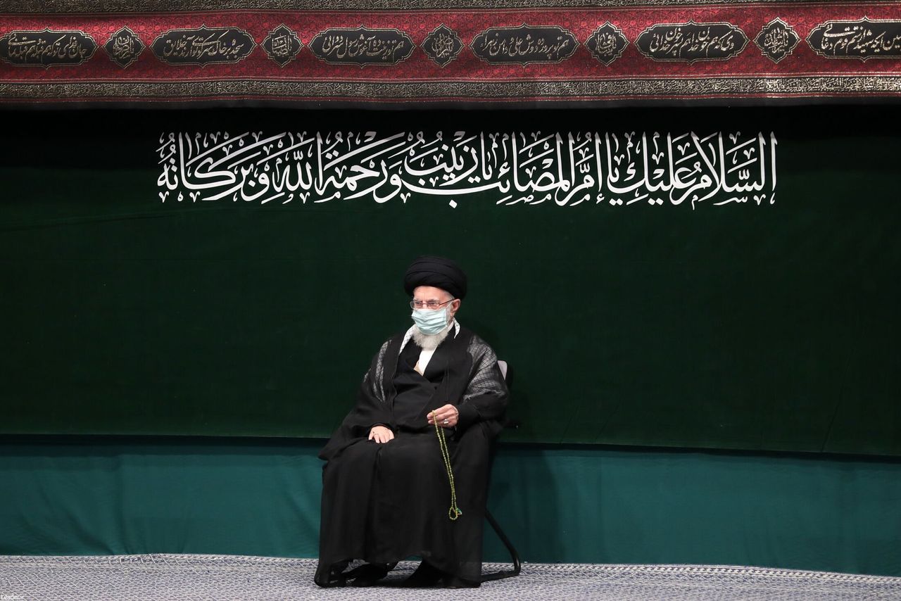 在週六公開的照片中,哈梅內伊獨自一人坐在德黑蘭住所清真寺內,戴着醫用口罩,面前是一羣戴着口罩的大學生。伊朗媒體還播出了哈梅內伊向人羣發表講話的視頻片段。