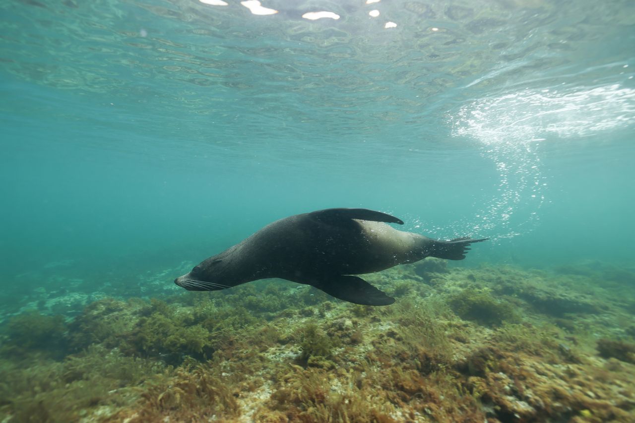 水下游泳的海豹圖片來源:迪士尼+國家地理頻道這類俏皮話屬於劇本創作範疇,與康伯巴奇先生無關。作為劇集主持人,他是一位極具魅力的嚮導,帶領觀眾以鳥瞰視角(以及青蛙、松鼠和鬣狗的視角)觀察生命繁衍與生存的奧秘。敍事節奏張弛有度——海綿的冒險自然不如遊隼在芝加哥市中心熱氣流中穿梭、教導幼鳥空中捕食來得驚心動魄。對相撲愛好者而言,加州海岸笨拙象海豹的摔跤場景或許更富趣味。