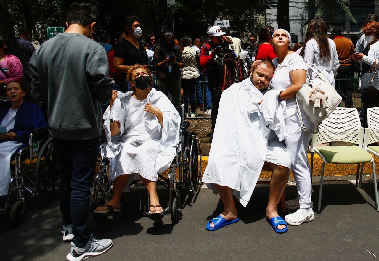 地震後,墨西哥城的醫院病人被疏散。圖片來源:CLAUDIA DAUT/REUTERS米卻肯州居民在社交媒體上發佈了學童疏散、建築物和牆壁搖晃以及超市貨架上商品掉落的視頻。