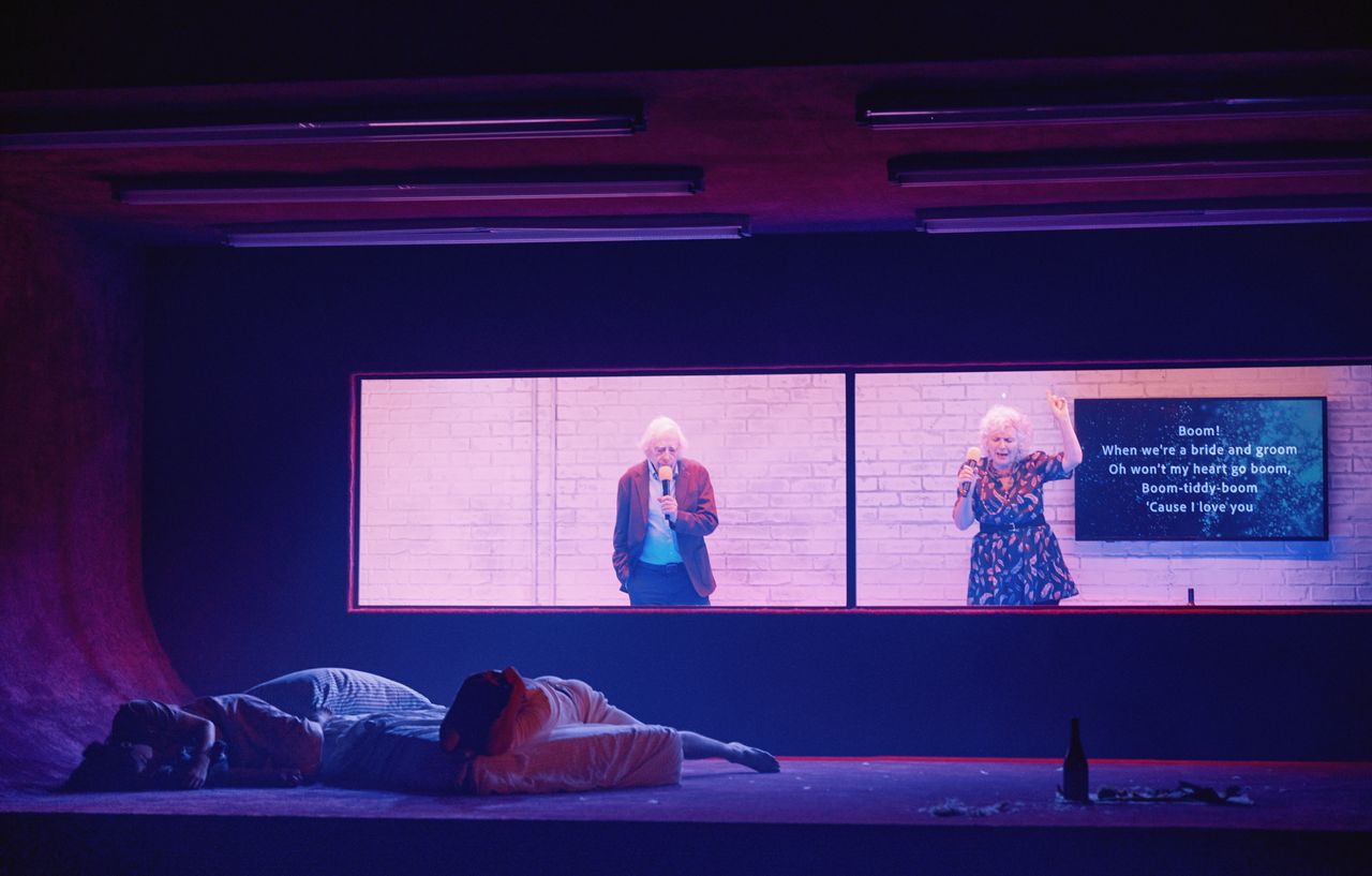 我提到他們奇特的位置並非比喻:彭德爾頓先生和菲奧德利西女士多次起身,在平板電視顯示歌詞的情況下,拿起麥克風演唱了幾首歌,不僅包括時代曲目如《我可以夢想,不是嗎?》,還有弗利特伍德麥克的《夢想》和阿黛爾的《像你這樣的人》。(觀眾被邀請一起合唱最後一首。)這兩位老人哼唱無害情歌片段的可愛形象與我們逐漸瞭解到的奧托,尤其是他的真實情況之間,存在一種奇特的割裂感。