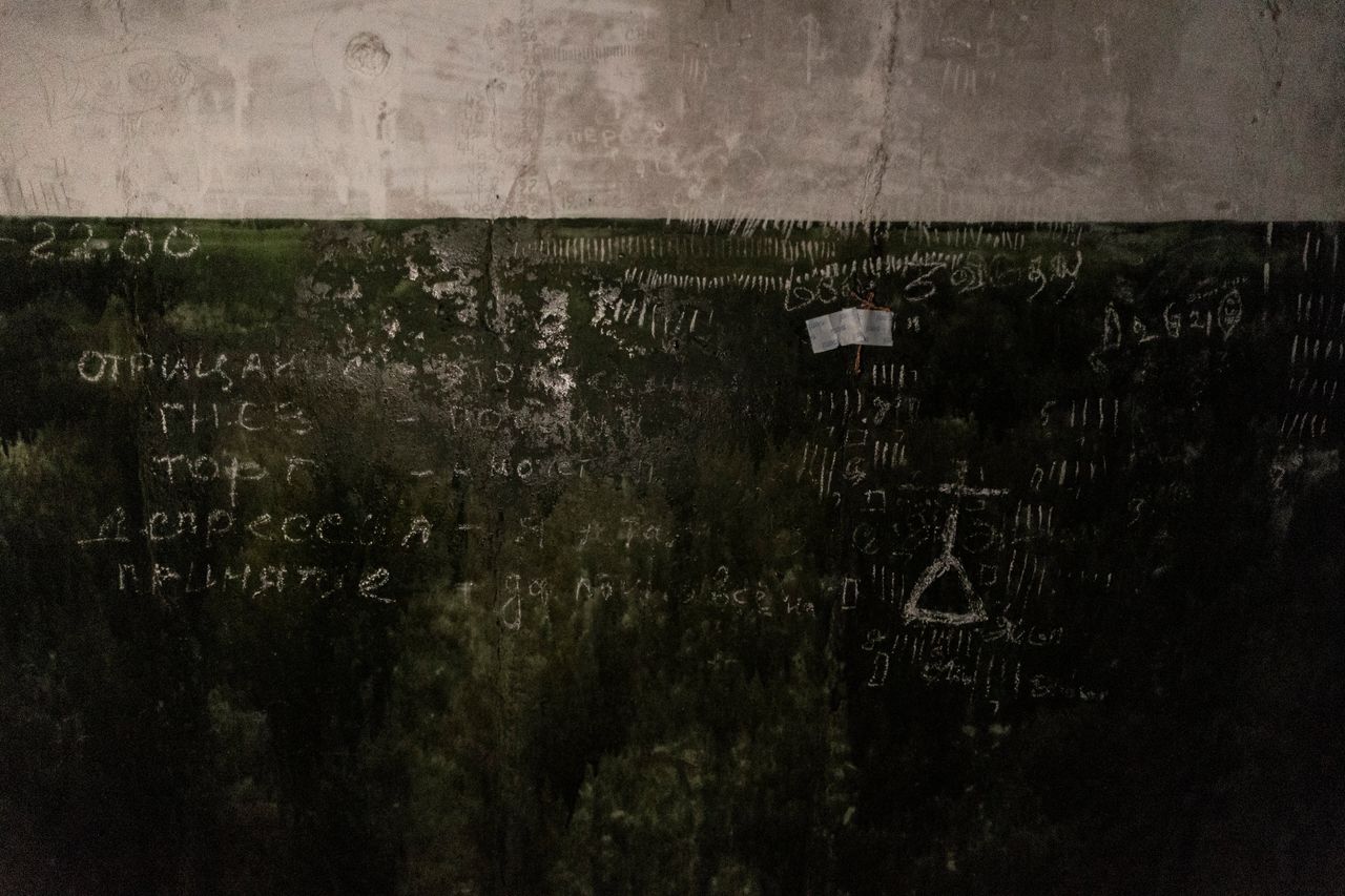 在沃夫昌斯克的拘留營中,被拘留者在牢房牆上塗鴉。