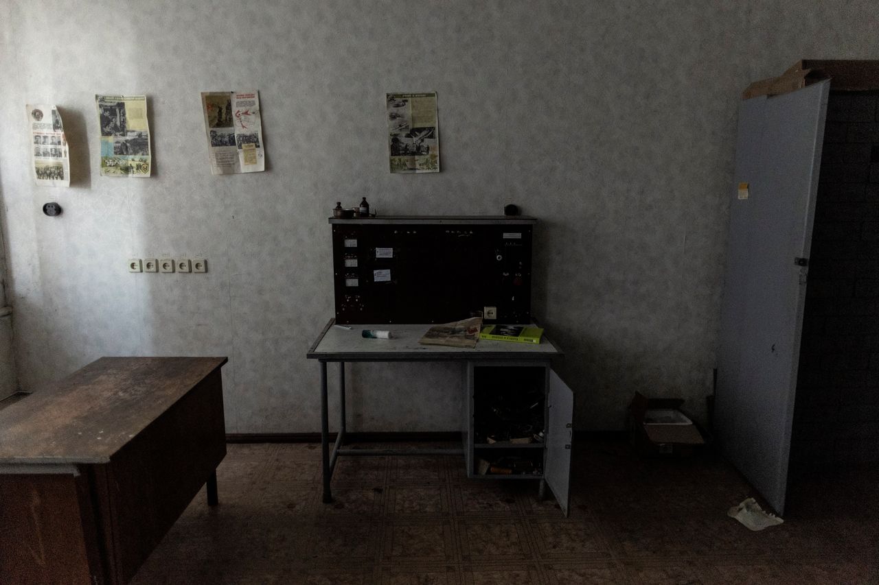 在一棟用作拘留營的建築中,有兩根橡膠警棍,曾被關押者稱它們被用來擊打他們的背部。還有一根木棍,曾用來抽打他們的小腿。此外還有一個高壓電控制板,上面裝飾着代表俄羅斯入侵的Z和V標記,曾用來對拘留者實施電擊。控制板上方仍懸掛着蘇聯二戰時期海報的複製品。