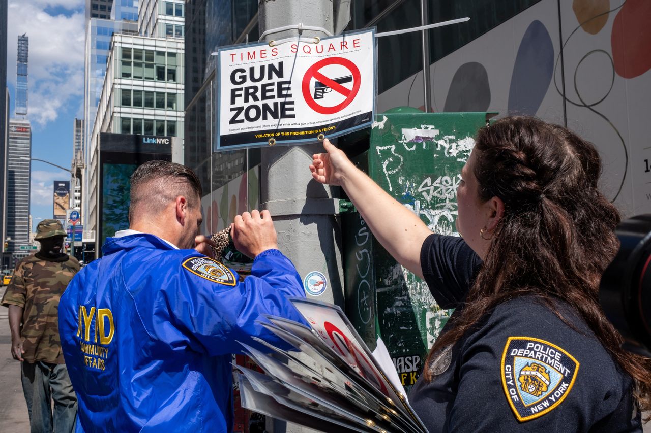 紐約州將這些場所列為“敏感地點”,禁止其他合法持槍居民進入,但法官表示紐約未能找到與這些禁槍區相符的歷史先例。這位由喬治·W·布什總統任命的法官指出,支持時代廣場周邊禁槍的最有力證據是兩項已有數百年曆史的法律——禁止在集市或市場攜帶槍支,但認為這兩項法規"不足以形成傳統”。