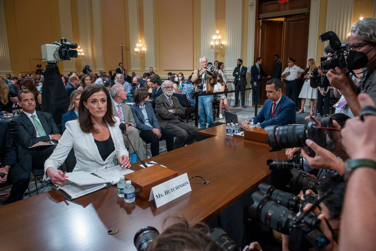 前白宮幕僚長馬克·梅多斯的助理卡西迪·哈欽森於六月底聽證會上作證。圖片來源:羅德·蘭基/祖瑪通訊社### 意外證人:卡西迪·哈欽森