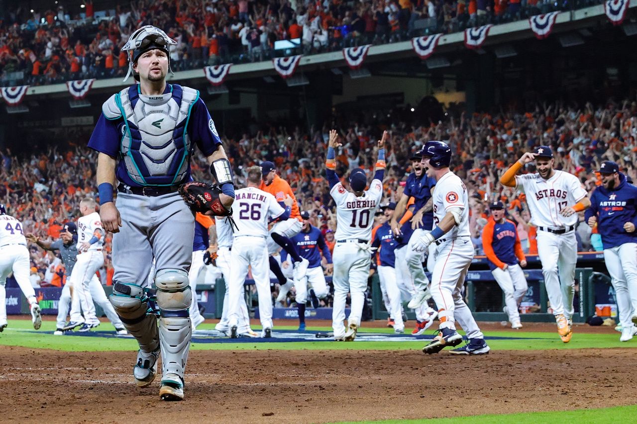 西雅圖水手隊的卡爾·羅利在約丹·阿爾瓦雷斯擊出再見本壘打後的反應。圖片來源:卡門·曼達託/蓋蒂圖片社與其他三支分區冠軍一樣,太空人隊在新採用的12隊季後賽賽制下獲得了五天休整。維蘭德帶着六天休息登板,卻被擊出10支安打。隨後登場的是美聯得分僅次於紐約揚基隊和多倫多藍鳥隊的打線,以及九月自責分率低至2.27的牛棚,整支球隊散發着一種篤定的氣場——總有一球能決定勝負。