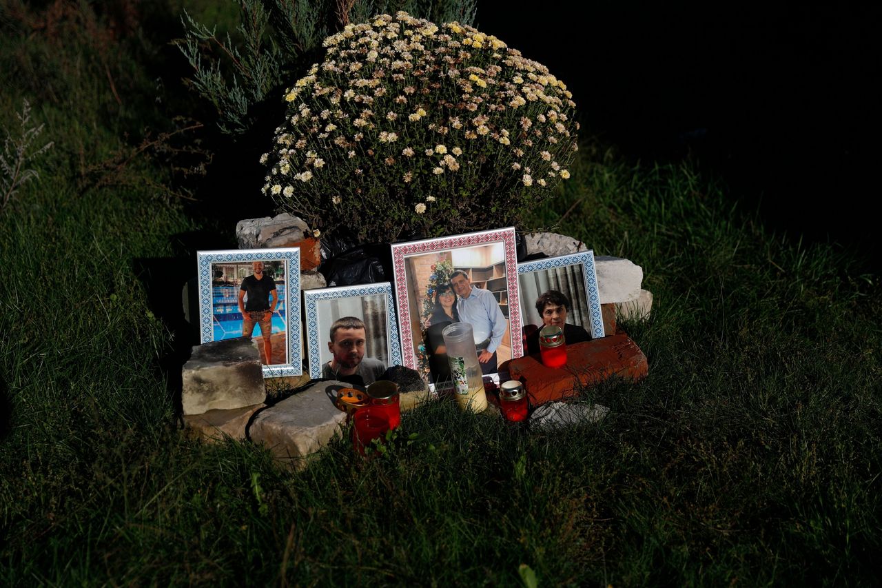 烏克蘭伊久姆市一棟建築遭導彈襲擊,遇難者紀念活動現場。圖片來源:atef safadi/Shutterstock