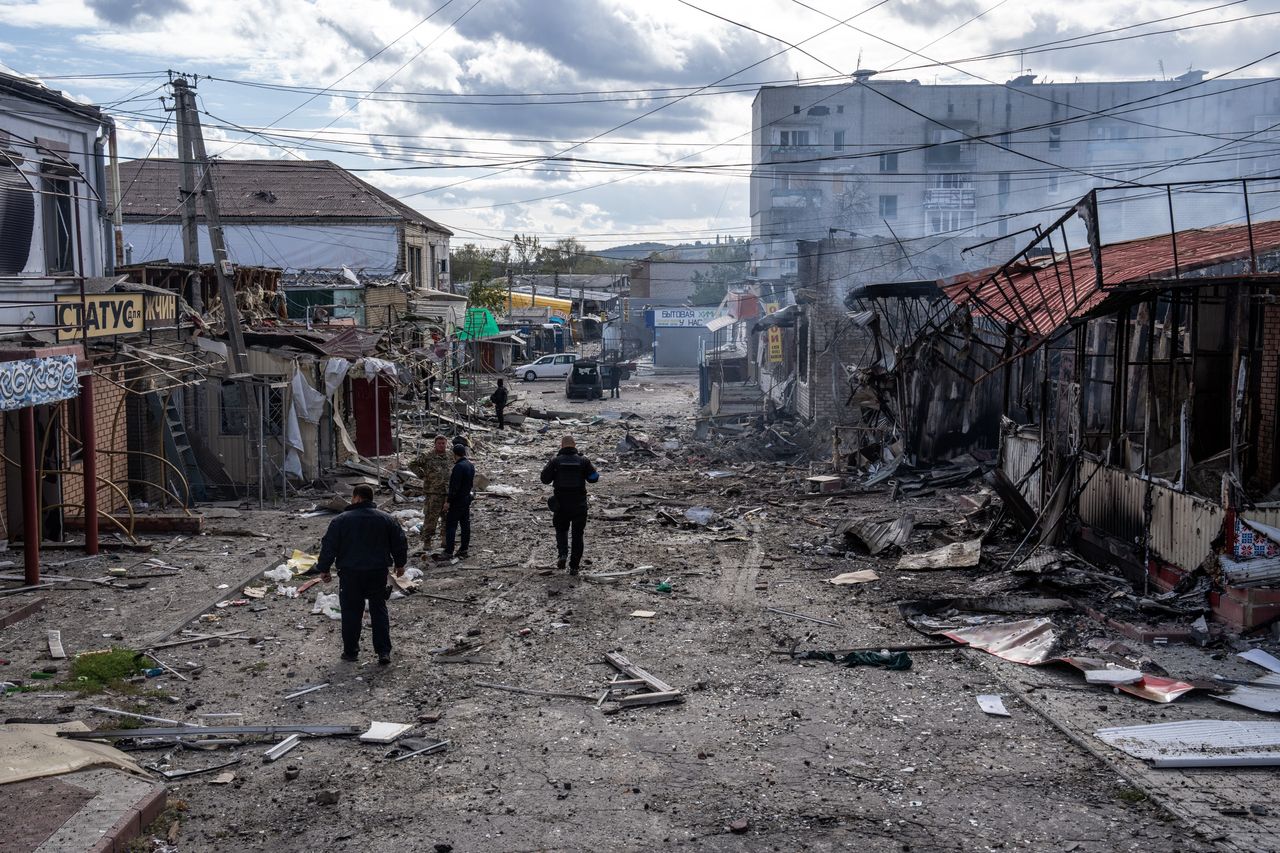 週四,烏克蘭哈爾科夫地區庫皮安斯克的一個商業區在俄羅斯導彈襲擊中受損。圖片來源:Carl Court/Getty Images英國國防部表示,俄軍在本月早些時候撤退約12英里後,似乎正在鞏固南部赫爾松地區的新防線。烏克蘭軍事官員證實,烏軍解放了赫爾松地區北部的五個定居點,美國智庫戰爭研究所週三表示,該機構每日發佈關於戰爭情況的報告。