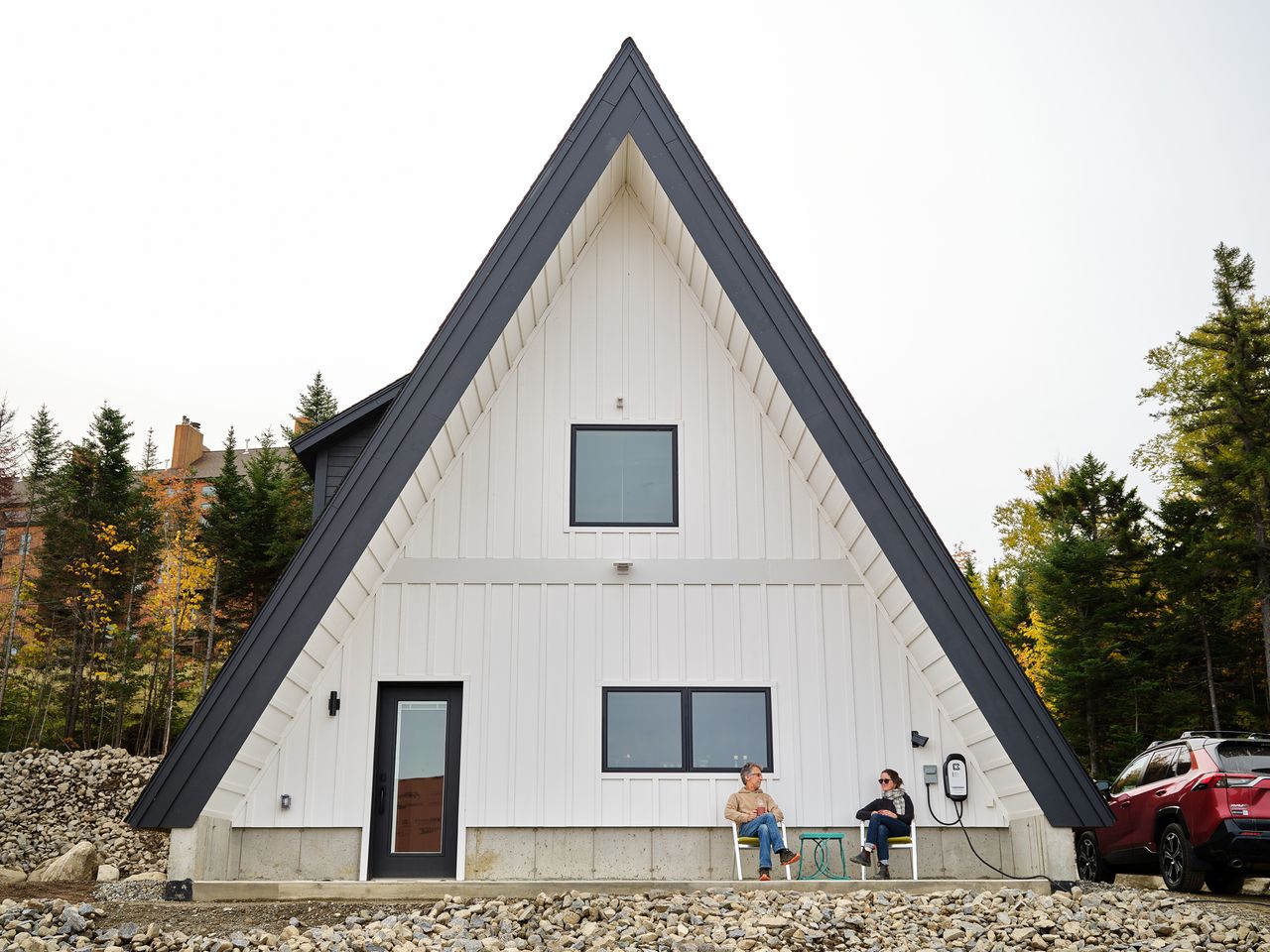 瑪麗·伯克和邁克爾·馬戈利斯坐在他們以57.9萬美元購買的A型框架住宅外,該住宅位於緬因州蘭奇利市薩德爾巴克山邊緣。圖片來源:肖恩·利奇菲爾德/《華爾街日報》薩德爾巴克滑雪場在關閉近五年後,於2020年12月重新開放。此後,新業主Arctaris Impact Investors有限責任公司已投資超過3000萬美元翻新基地旅館、建造山中旅館、增加纜車並改善造雪系統。該公司聯合創始人兼管理合夥人喬納森·塔表示,目前正推進包括A型框架社區在內的多項地產開發項目,並計劃新建酒店。