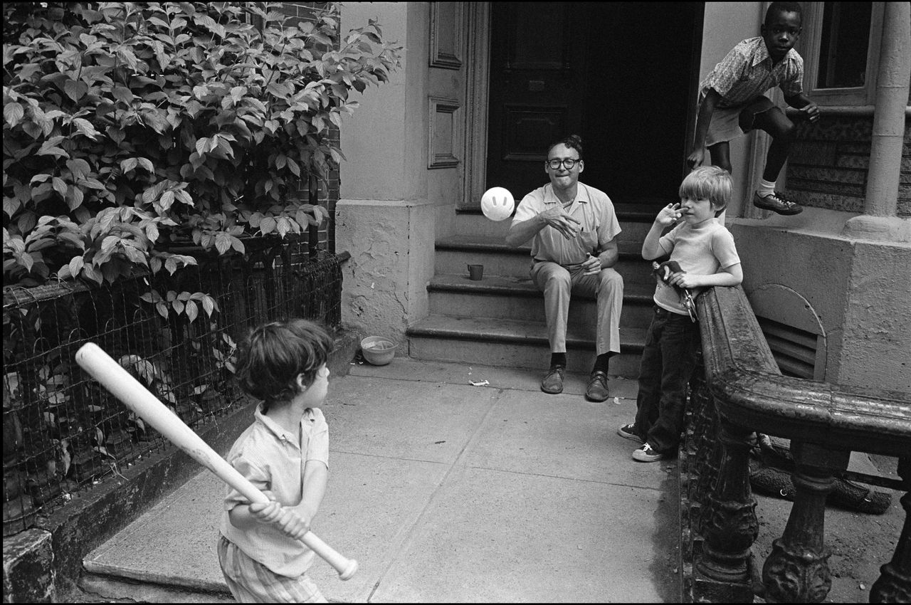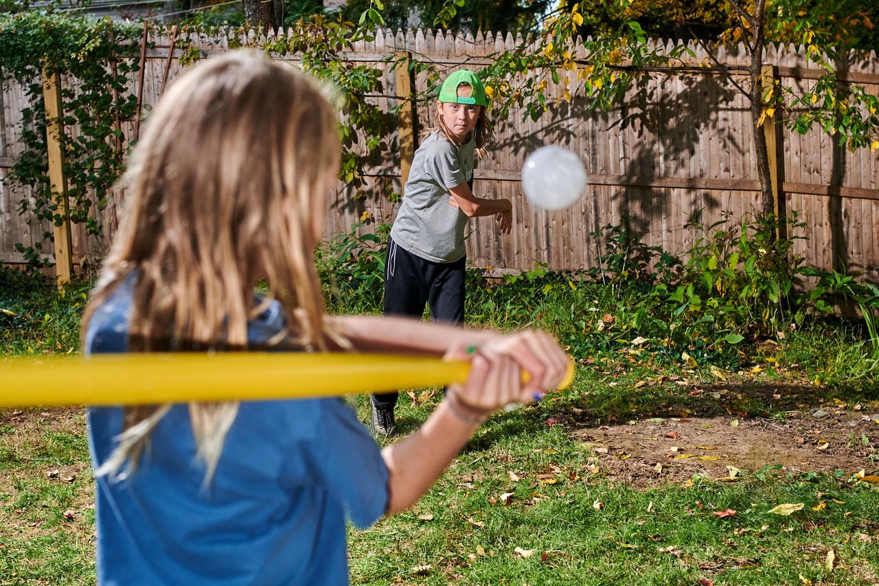 這種遊戲形式類似街頭籃球。最多是二對二或一對一——投手對決擊球手。投手站在距離本壘約45英尺處。對我們來説,任何越過投手頭頂的擊球算一壘安打。更遠的——到人行道——是二壘安打。打到街上——三壘安打。飛越樹籬?全壘打。