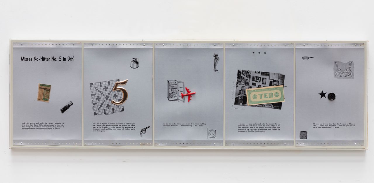 總之,史密斯女士是位以低調方式創作的重要藝術家。她的作品安靜卻倔強地對抗着當時幾乎由男性壟斷的南加州光鮮技術流藝術。“我拋棄了那些單幅圖像配文字的精緻拼貼,轉而採用現成物和通俗小説文本片段,“她在藝術生涯初期如此説道,“不知是什麼改變了我。“從這場靈巧而親切的回顧展來看,這種轉變對我們而言實屬幸事。