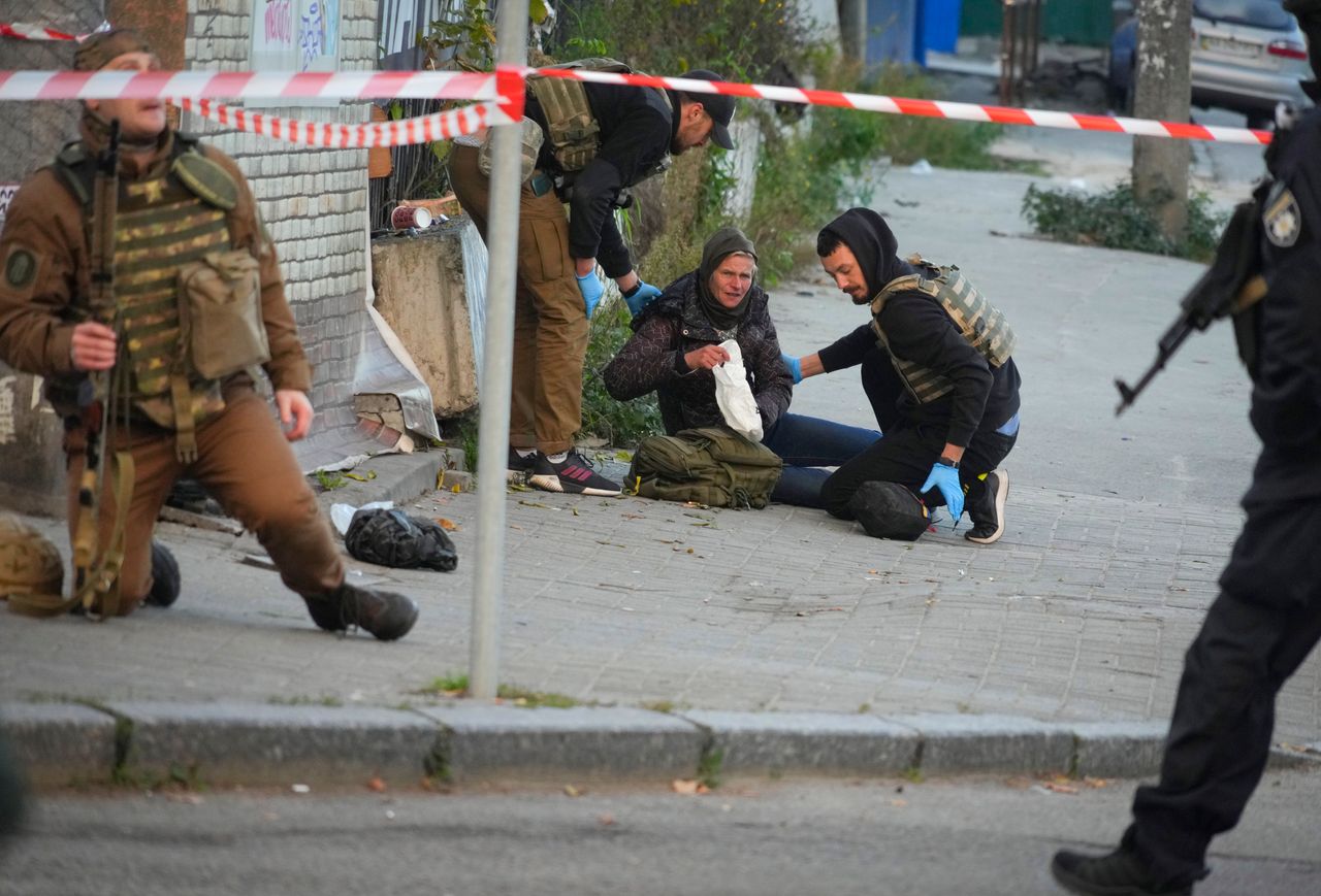 醫護人員救助一名受傷女性。圖片來源:Efrem Lukatsky/Associated Press烏克蘭官員認為,俄羅斯加大打擊力度是為了拖垮平民,以回應克里姆林宮在戰場上遭遇的一系列挫折。