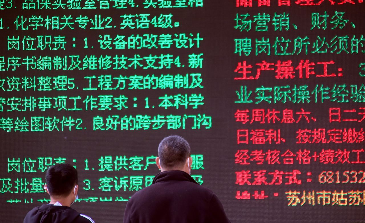 由於商業活動呈現復甦態勢,經濟學家對中國延遲發佈數據感到不解。圖為江蘇省蘇州市招聘會上求職的大學畢業生。圖片來源:Cfoto/Zuma Press渣打銀行香港大中華區首席經濟學家丁爽將此舉形容為"非常奇怪",表示想不出有説服力的延遲理由。