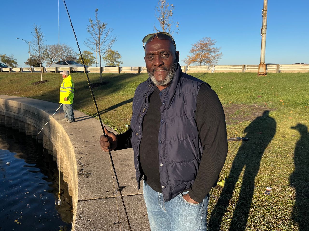 56歲的地毯安裝工布拉斯·埃斯科貝多站在水泥堤岸上觀察魚情,這位洪堡公園社區居民今年已釣獲15條鮭魚——每日限額為5條——他將魚肉切片後與家人和教會成員分享。“我都處理得乾乾淨淨送給他們,“他説道。