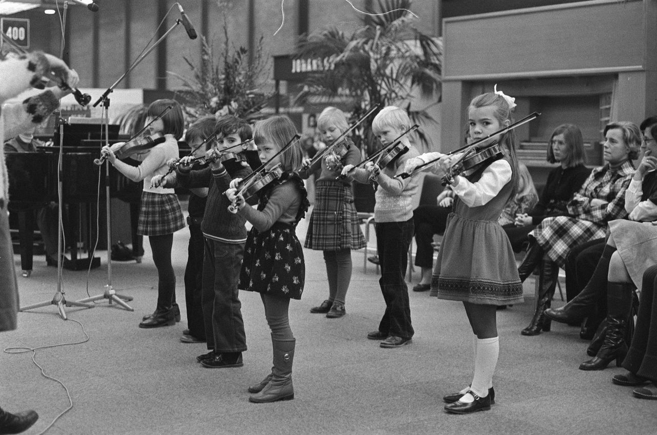 1976年,荷蘭烏得勒支音樂博覽會上,孩子們正按照鈴木教學法練習小提琴。圖片來源:蓋蒂圖片社鈴木教學法旨在為枯燥的練習注入趣味元素。例如,學生除了一對一課程外還需參加集體課,目的是讓孩子們體會與同伴共同演奏的快樂。初期課程充滿吸引學齡前兒童的悦耳旋律。鈴木十冊小提琴教材的第一冊以他改編的《小星星》開篇,這首曲子已成為其教學運動的標誌性曲目。最後兩冊則收錄了難度較高但同樣朗朗上口的莫扎特協奏曲。
