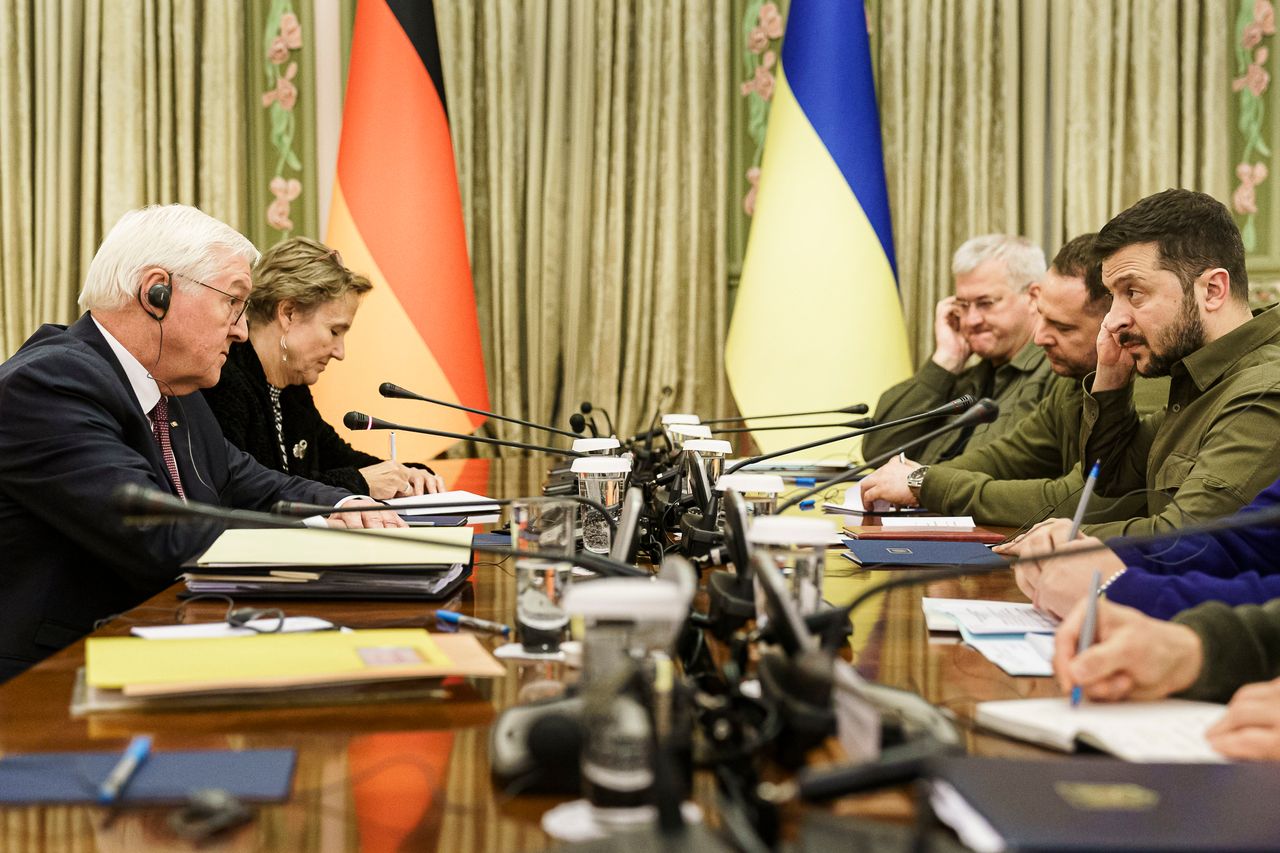 德國總統弗蘭克-瓦爾特·施泰因邁爾週二訪問基輔期間會見了烏克蘭總統弗拉基米爾·澤連斯基。照片:Bundesregierung/Denzel, Jesco/Zuma Press聯繫諾埃米·比塞爾貝,郵箱:[email protected],以及博揚·潘切夫斯基,郵箱:[email protected]