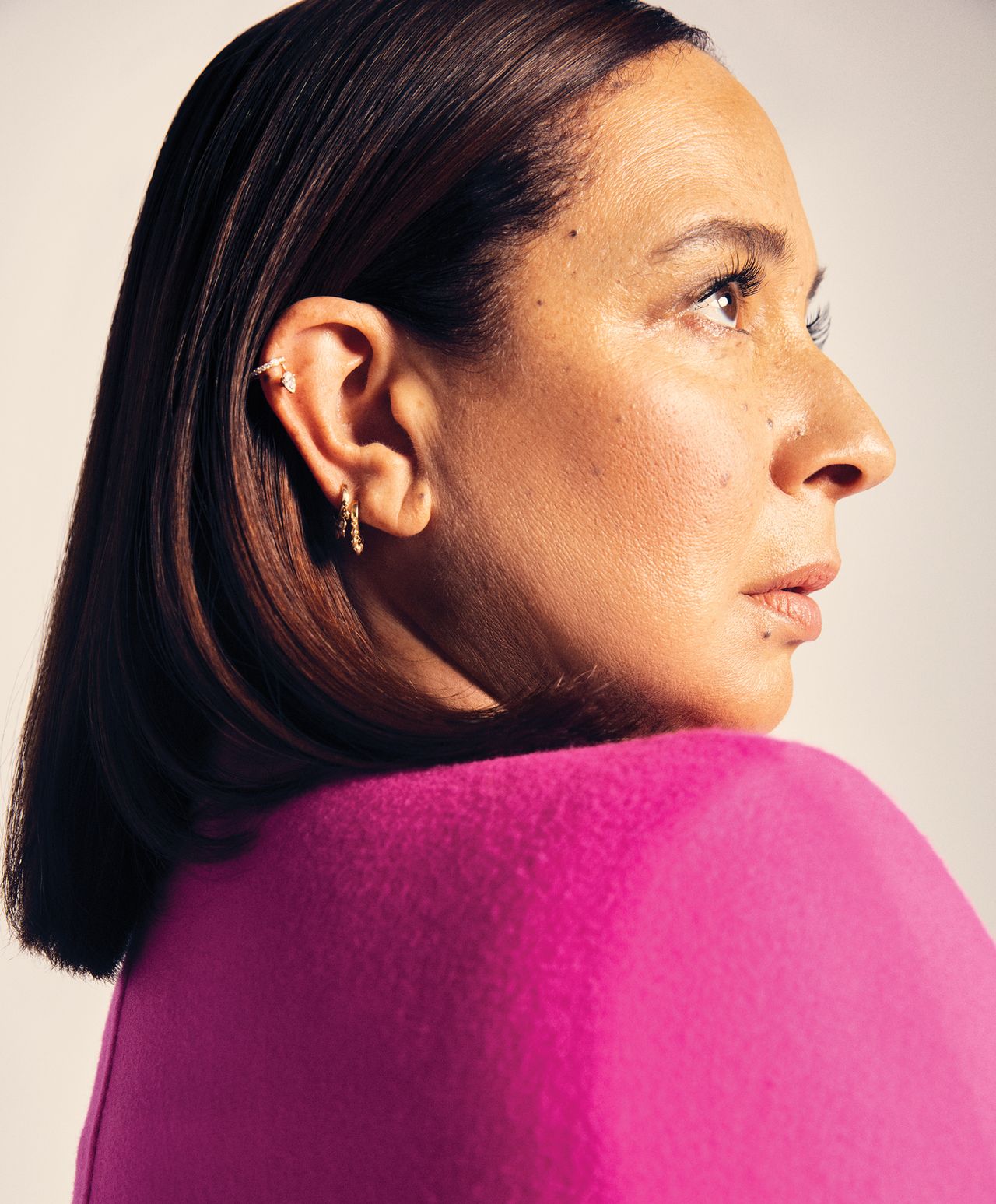 “我認為人性中存在着某種渴望共情的特質,”魯道夫説,“這就是為什麼我們喜歡觀看故事中的人物。我們希望能以某種方式與自己建立聯繫。”瓦倫蒂諾斗篷,6,600美元,精選瓦倫蒂諾精品店;Lafayette 148 New York襯衫,698美元,長褲998美元,Lafayette148NY.com;Repossi耳夾(右耳頂部),3,850美元,SaksFifthAvenue.com。只有討人喜歡的明星才能以輕鬆的方式抵消《Loot》中的奢華。(在離婚訴訟期間,莫莉發現自己擁有一座羊駝農場和一座遊樂園。)“億萬富翁的世界對我來説就像魔法一樣,我一直喜歡在我所做的任何事情中加入一些魔法的元素,”魯道夫説。這部劇要求她在名氣和金錢的交匯處扮演一個誇張版的自己,這對一個不認為自己是個名人的人來説是陌生的。“我知道我是一個工作的演員,人們知道我是誰,但我不覺得自己是個名人,因為這個詞對我來説今天意味着別的東西,”魯道夫説,“現在有很多不同類型的名人,也有很多自創的名人,人們因為出名而出名,這不是我所做的。”