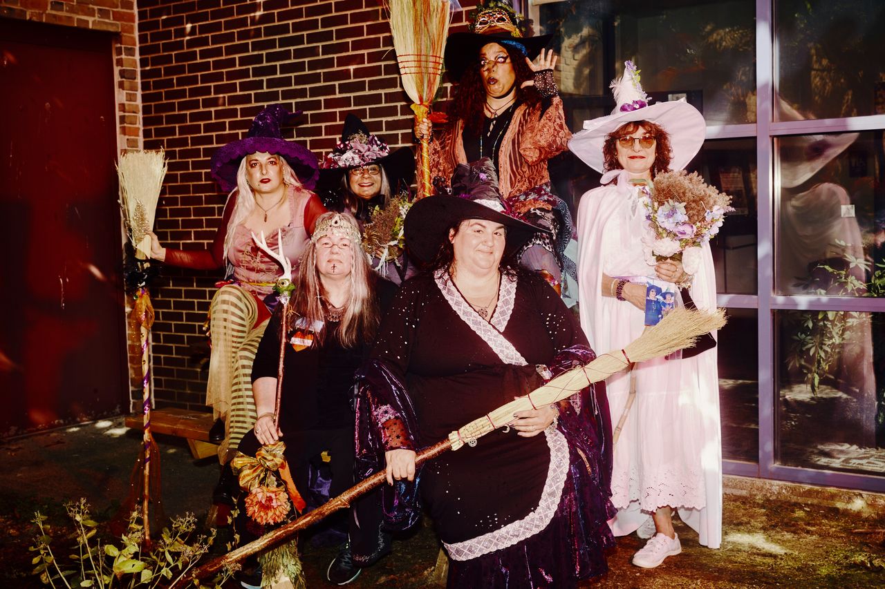 對許多參與女巫舞蹈的人來説,裝扮是樂趣的一半。攝影:西蒙·西馬爾為《華爾街日報》拍攝“現在有人聯繫我們,想僱傭分會進行快閃活動,”她説。她在協會Facebook頁面上發佈的今年週六遊行邀請函吸引了約1200名確認參加者和10600名感興趣的人。