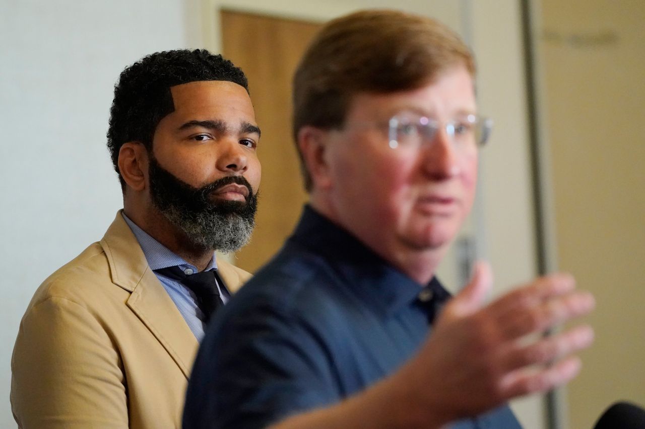 傑克遜市長喬克韋·安塔爾·盧蒙巴與密西西比州州長泰特·裏夫斯在上個月的新聞發佈會上。圖片來源:羅赫略·V·索利斯/美聯社國會警察新增巡邏區域包括市中心、大學校區以及以白人為主的高檔社區貝爾黑文和方德倫。在此擴編計劃前,該部門主要負責州議會大廈及其他政府辦公大樓的安全。