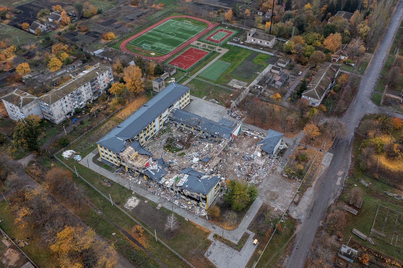 第聶伯羅彼得羅夫斯克州阿波斯托洛韋市一所學校遭俄軍導彈擊中後損毀。圖片來源:Carl Court/Getty Images烏克蘭能源部官員稱,週一的襲擊破壞了為烏克蘭鐵路供電的電網,導致首都三分之二地區停水,約35萬套公寓斷電。該官員表示,國家緊急服務部門已派出搶修隊前往受襲地點。